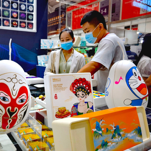 第30届中国(深圳)国际礼品·工艺品·钟表及家庭用品展览会暨阿里巴巴1688工厂直采季活动上的礼品盒展示区。(图片由CNSPHOTO提供)