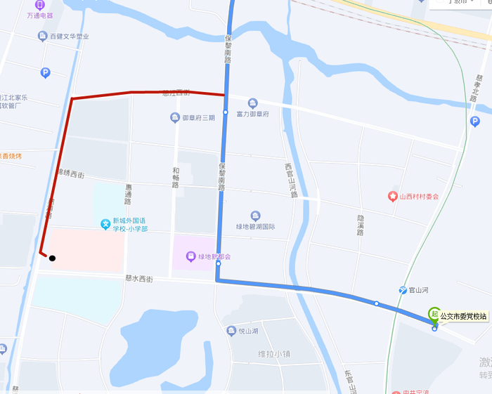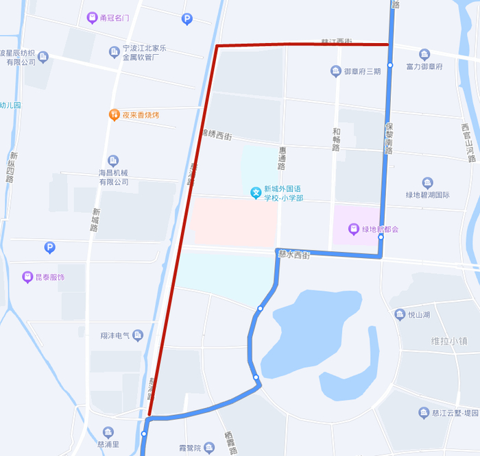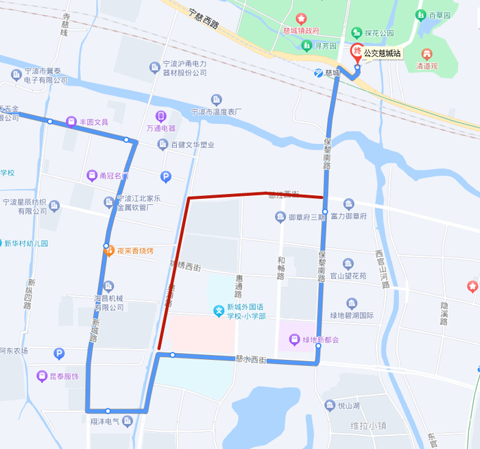 1.调整走向:保黎南路慈江西街口后改走慈江西街、慈浦路、慈浦路慈水西街口后恢复原线运营。
