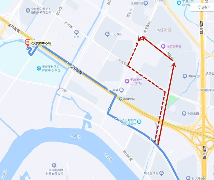 2.撤销宁波奥体中心停靠站点,同步撤销公交奥体中心站始发。