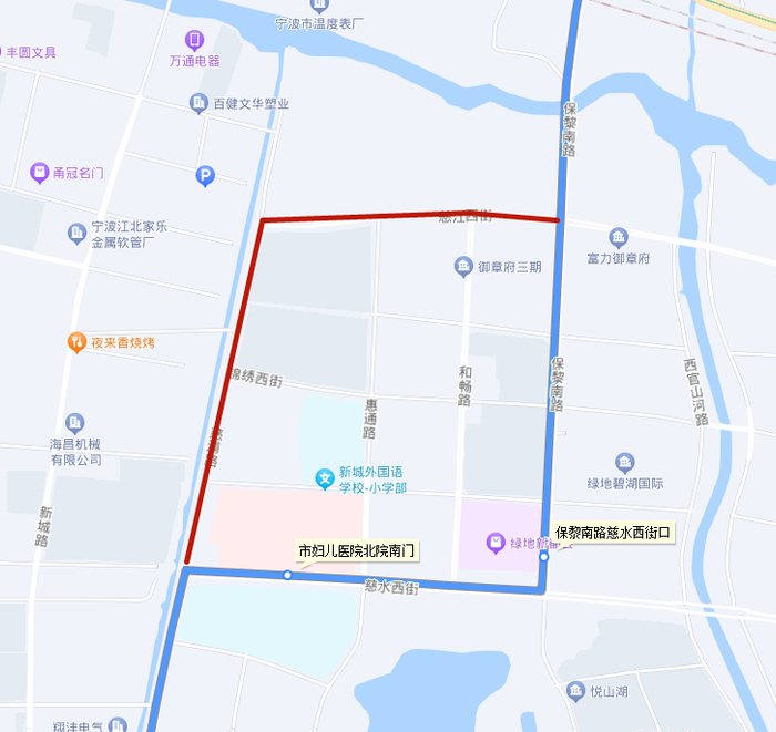 1.调整走向:保黎南路慈江西街口后改走慈江西街、慈浦路至市妇儿医院北院。