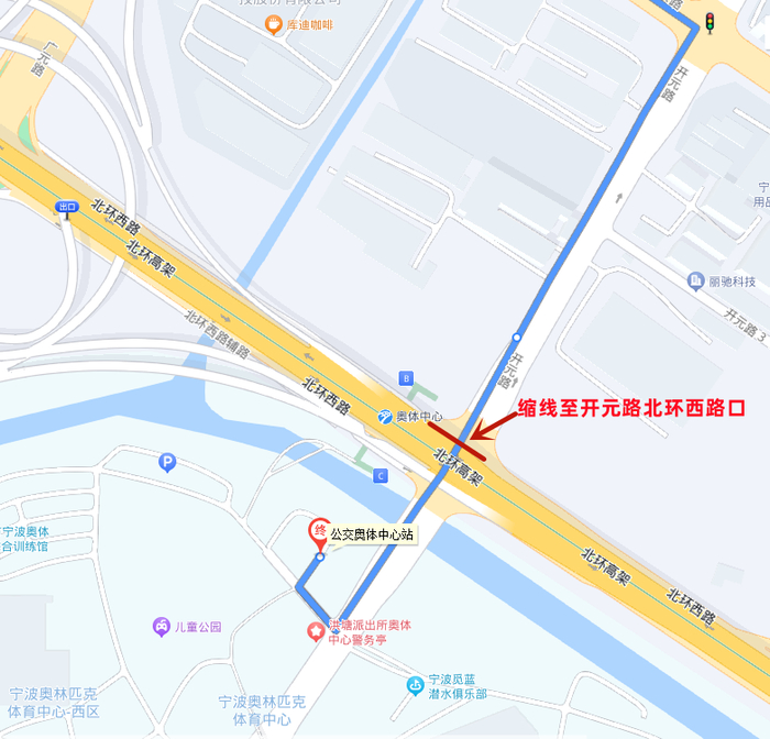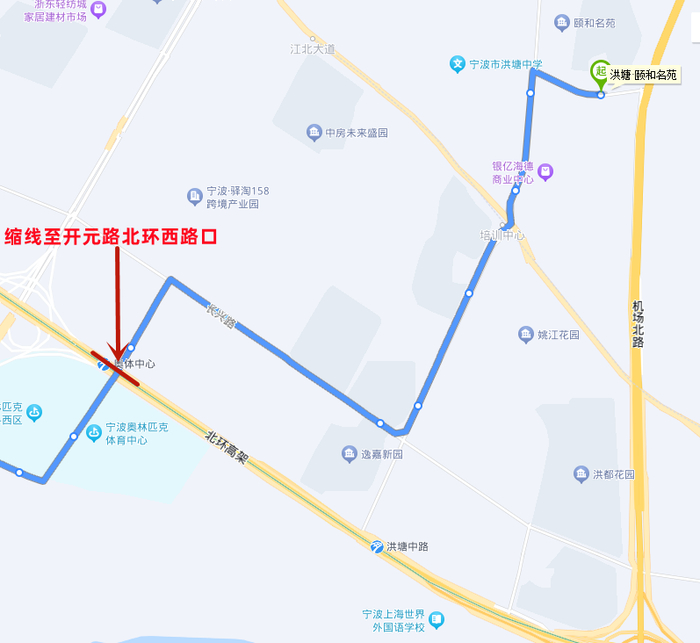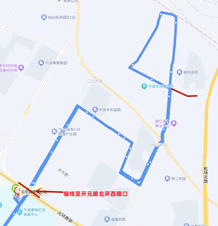 1.撤销部分开元路走向及宁波奥体中心↑停靠站点,同步撤销公交奥体中心站始发。