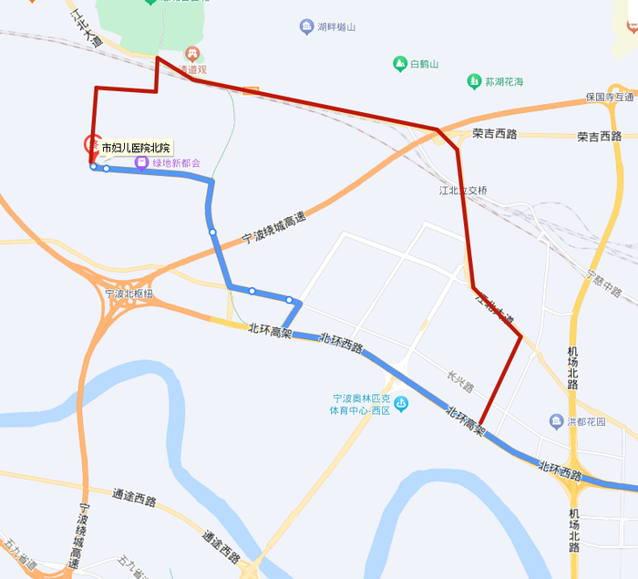 1.调整走向:市妇儿医院北院始发后改走慈浦路、慈江西街、保黎南路、宁慈西路、江北大道、洪塘西路、洪塘西路北环西路口后走高架恢复原线运营。