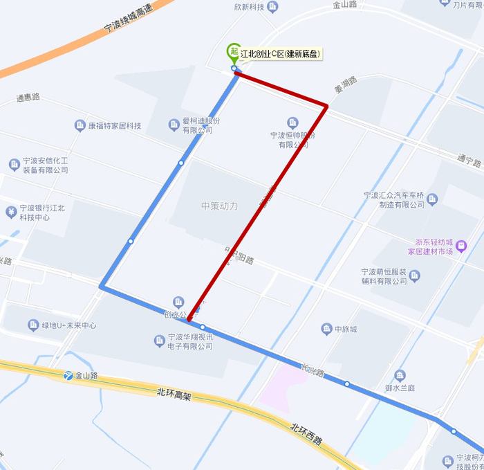 1.调整走向:江北创业C区始发后改走通宁路、姜湖路、姜湖路长兴路口后恢复原线运营。