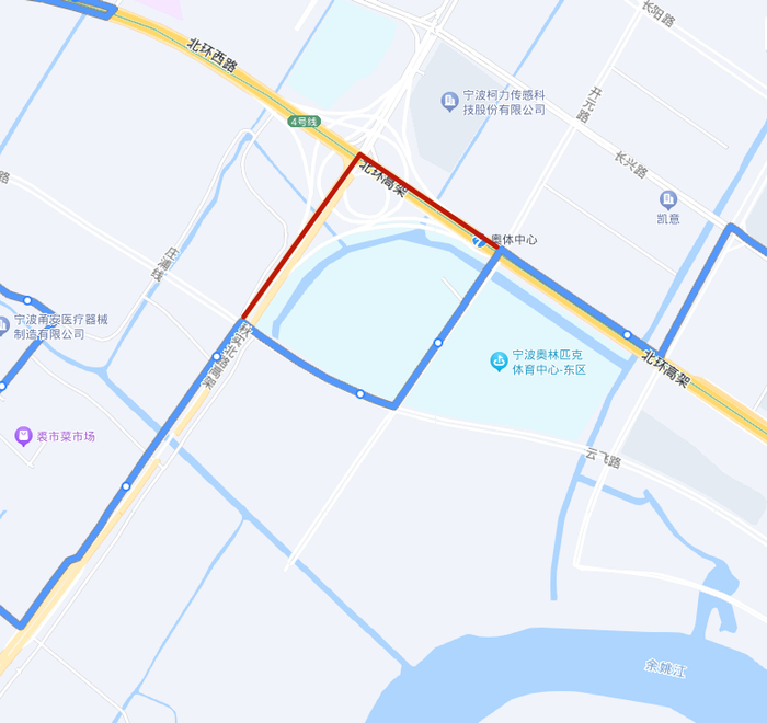 3.临时增设宁波奥体中心北↓停靠站点。