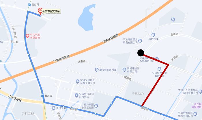2.撤销部分长阳路、金山路、长兴路、慈孝南路、慈水东街走向及金山路长阳路口、中策世纪博园、长兴路同济路口、慈孝南路长兴路口↓、宁波前洋小镇东↑、宁波市委党校、慈孝南路慈水东街口↑停靠站点,同步撤销公交市委党校站始发。
