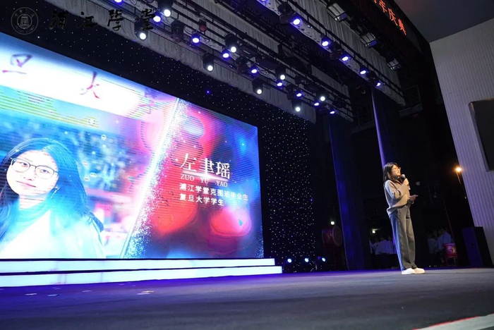 “10年前,当我还是一个小朋友的时候,第一次走进浦东图书馆二楼的小教室,从那起的每一个周六早晨都是在朗朗读书声中度过。国学的影响,也伴随着我一路走来。”“克图班”毕业生、复旦大学新闻学院学生左聿瑶来到典礼现场。她表示,人们总说“新闻无学”,也令她常常思考:“我们是谁?我们在做什么,我们可以做什么?”这时,她受益于国学滋养,始终坚守选择这条道路的初心:“孔子‘任重而道远’的话语常常回响于耳边,是对我的鞭策与宽慰。庄子关于‘无用之用’的阐释,那样辽阔高远的意境,总是提醒我生命的另一种可能……通过在浦江学堂学习的5年,让我与古代先贤对话,更是我对世界、对人生的一次启蒙。”