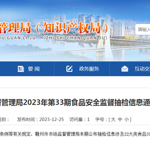 江西省赣州市市场监督管理局2023年第33期食品安全监督抽检信息通告