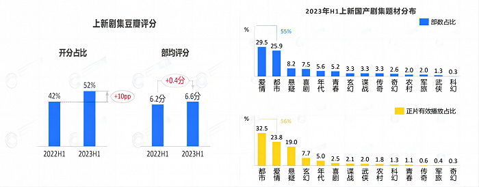 “观众上桌”,首先是参与剧集讨论的热情极高,光豆瓣打分数据来看,2022年打分人数在10w以上的作品有20部,2023年该数据增长到35部。