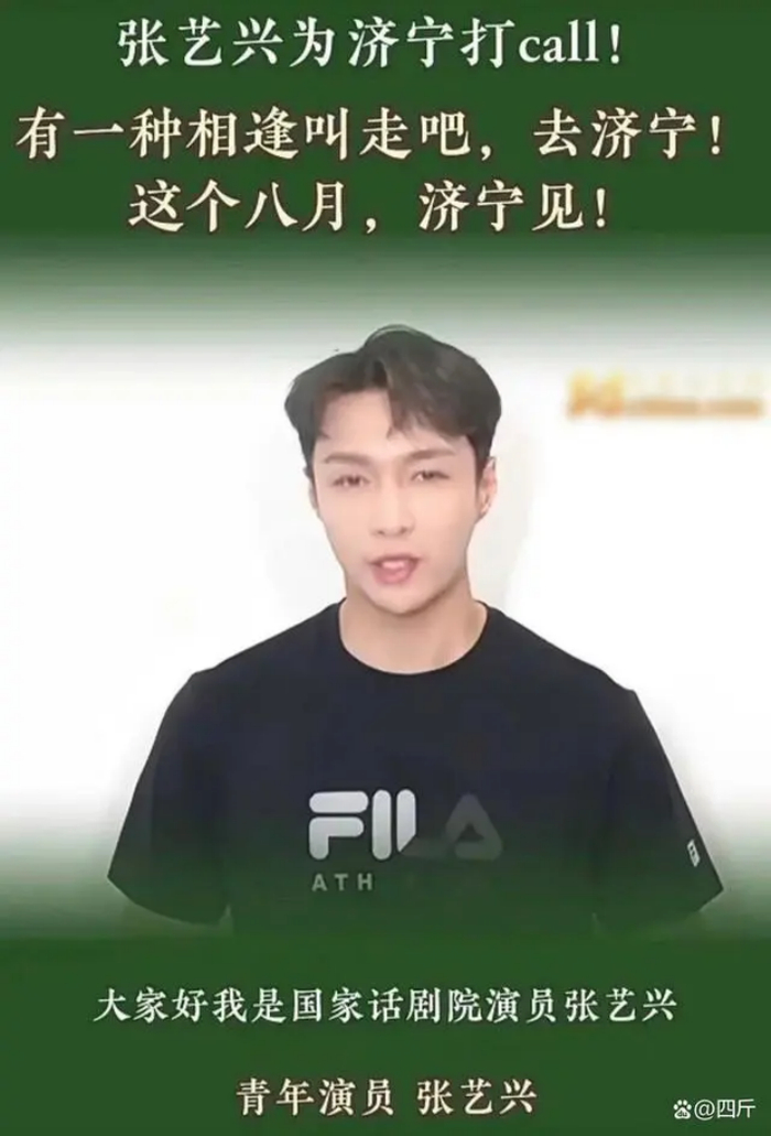 事情的起因是张艺兴主动现身,录制了一段视频,以国家话剧院演员的身份为山东济宁去做宣传,画面里张艺兴穿了一身黑色上衣,头发也只是简单打理了一下,整个人都非常干练精神,而视频内容则是张艺兴为山东济宁“打call”,希望和大家在8月的时候,去济宁见面。