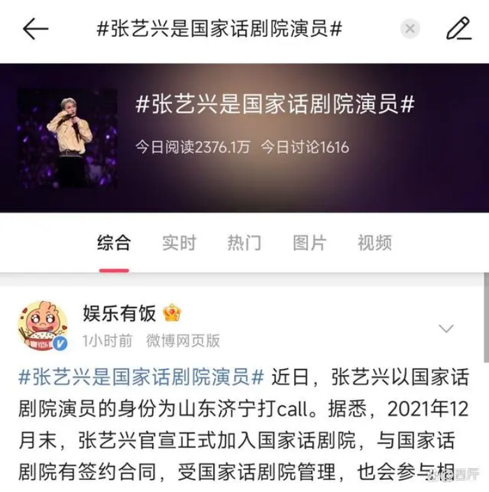 其实早在8月15日,一则关于张艺兴以“国家话剧院演员”身份做宣传的内容已经登上过热搜,引发了网友的热议。