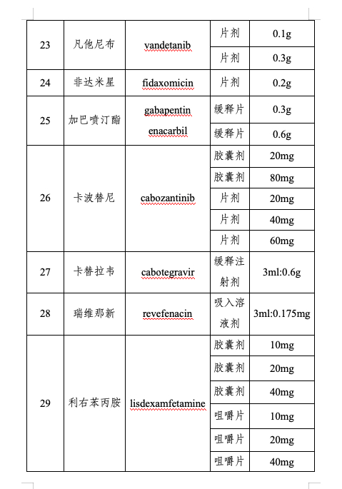首次获批上市的药品含多个罕见病用药,如,治疗Ⅰ型遗传性酪氨酸血症的尼替西农胶囊等;同时,也涉及呼吸系统用药、内分泌及代谢用药、抗感染用药等常用药领域,如治疗和预防侵袭性曲霉病的泊沙康唑注射液等。