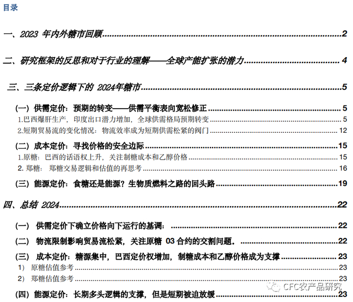 2024年白糖 · 生物质乙醇计划走回头路 全球食糖供需预期转变