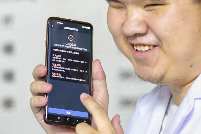 滴滴自成立之初就非常重视信息无障碍。2019年,滴滴开始做服务无障碍化。彼时,滴滴召开了一次恳谈会,请来了包括视障群体、肢体障碍群体在内的用户,聊聊他们的需求。恳谈会后,平台逐步上线了“导盲犬使用者无障碍服务”和“盲人无障碍出行服务”,盲人用户可以在滴滴APP中点击“我的”,并找到“无障碍服务认证”。