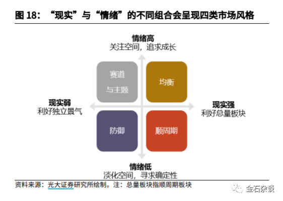 最后,金石杂谈认为,这篇研报研究方法很有意思,情绪和现实也不错,不过,四象限对应的这个统计数据所对应的板块配置问题还是很大的,或者说现实不是简单的历史回溯。