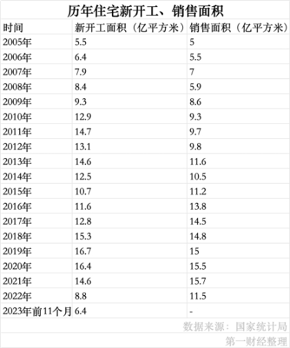 国家统计局数据显示,全国新开工住宅面积在2022年同比减少近4成后,2023年前11个月再下降超2成,预计全年很难突破10亿平方米,为过去15年来的低点。业内预计,这一情况在明年也难有明显改善。中指研究院市场研究总监陈文静预计,乐观情形下,2024年新开工面积也将同比小幅下降。