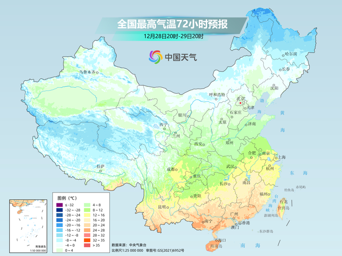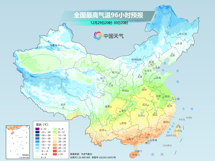 未来几天,我国此前偏冷的局面将快速转为偏暖,比如贵阳,未来一周最高气温大多在15℃上下,最暖的时候能达到18℃,而当地12月下旬平均最高气温为9.7℃,偏暖比较明显。