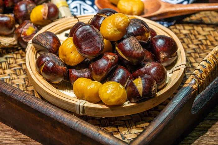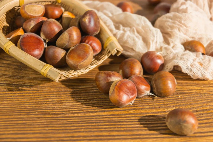 板栗作为坚果类食品,口感甜糯芳香,营养价值丰富。板栗的淀粉含量高达70%左右,与粮谷类相当,还含有丰富的胡萝卜素、硫胺素、核黄素、烟酸、泛酸、生物素、生育酚等多种维生素,富含钙、铁、磷、钾、镁、锌等矿物质,以及不饱和脂肪酸和黄酮类物质等。目前,市面上的板栗产品主要包括生板栗、糖炒栗子、即食板栗仁、速冻板栗、板栗糖水罐头、板栗酱、板栗粉、板栗酒、栗汁饮料等,满足消费者对美味的追求。