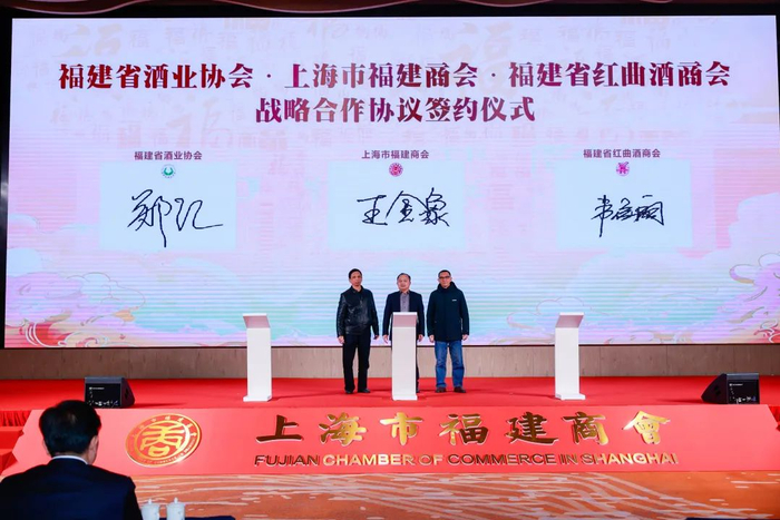上海市福建商会名誉会长王金象代表上海市福建商会与福建省酒业协会、福建省红曲酒商会战略合作协议签约仪式。