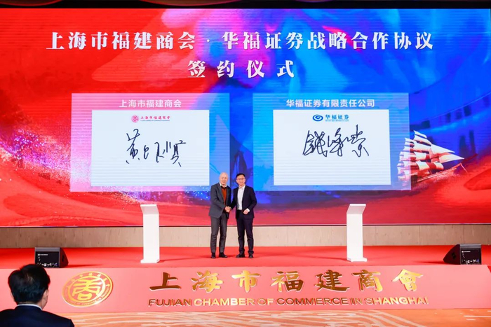 上海市福建商会名誉会长黄银贤代表上海市福建商会与华福证券战略合作协议签约。