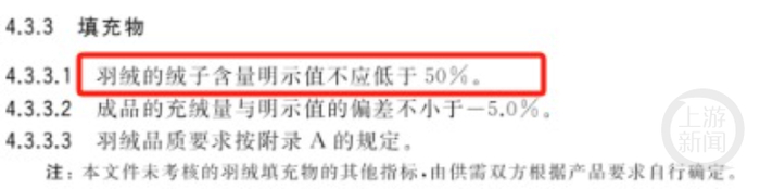 25日,中国羽绒工业协会信息部主任祝炜告诉上游新闻记者,羽绒服在充绒量上没有具体充多少克的规定,“标称有一个上下浮动,不能超过5%负偏差。”
