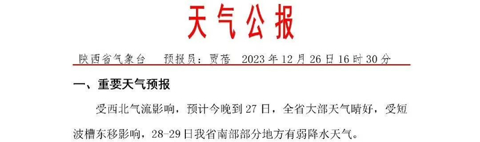 陕西省气象台发布重要气象预报