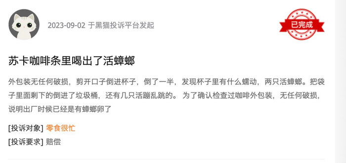 零食变质发霉,吃出蟑螂、蛆虫,零食很忙一年内超九成投诉直指“食安”问题