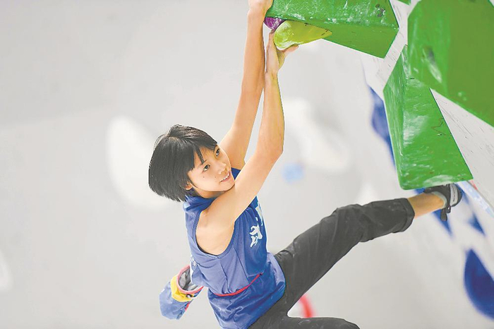 成都攀岩小将陈宣臻展风采