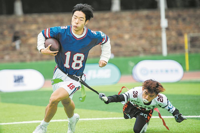 腰旗橄榄球越来越受年轻人喜欢 图据新华社