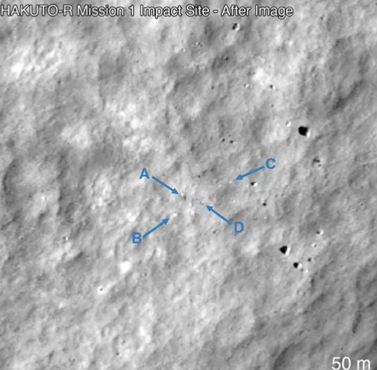 今年早些时候,日股上市公司ispace的“白兔-R”登陆器在迫近月球的最后时刻错误估算了高度,导致航天器自由落体摔在月球上,也错过了历史第一的殊荣。后来路过登陆点的NASA月球探测卫星,还顺手拍下了摔得稀碎的“白兔”。Ispace也在上个月宣布,计划于2024年底再度挑战登月项目。