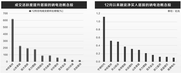 相比A股整体成交情况,钠电池板块本月成交活跃度较高。数据显示,12月以来,概念股日均成交1.86亿元,环比上个月略有增长;同期A股整体日均成交环比下滑超10%。