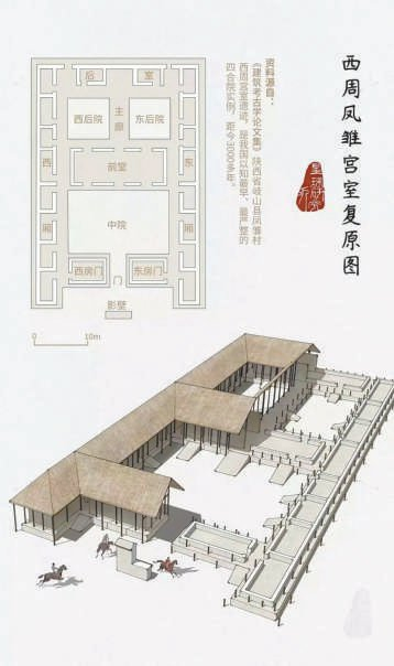 陕西省岐山县凤雏村西周宫室遗址复原图。
