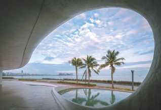 位于海口世纪大桥旁边的云洞图书馆是一个绝佳的“洞窟”观景地,这是马岩松设计的通体呈白色的建筑,造型采用“洞”的概念,令人想到了讲究“瘦、皱、透、漏”的太湖石,或者是奇幻的海底贝壳类生物,夜晚降临,月色之下,室内灯光通过每个洞窗闪耀如贝珠。