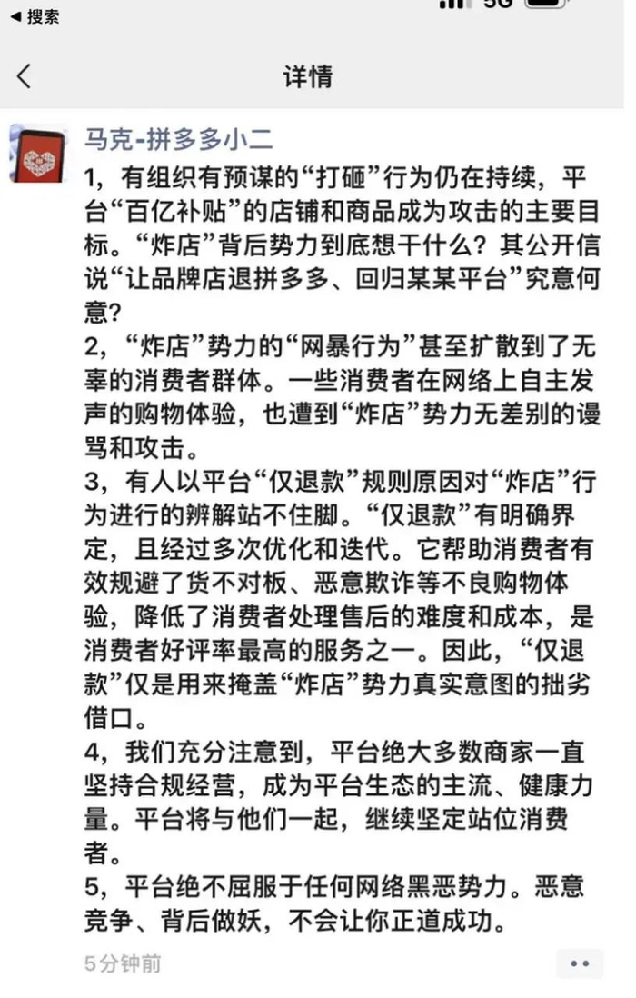 此外,恶意“仅退款”的出现,也让拼多多商家与平台的关系变得紧张,今年3月,大量拼多多自营店铺遭到用户恶意下单,并在下单后申请“仅退款”,引发了轰动一时的“拼多多炸店事件”,而事件的主要参与者,则正是很多苦“仅退款”久矣的拼多多卖家们。