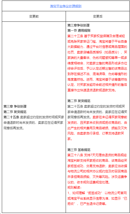 12月26日生效的这三则淘宝平台争议处理规则变更中,其中主要关注点集中在第一条,即:
