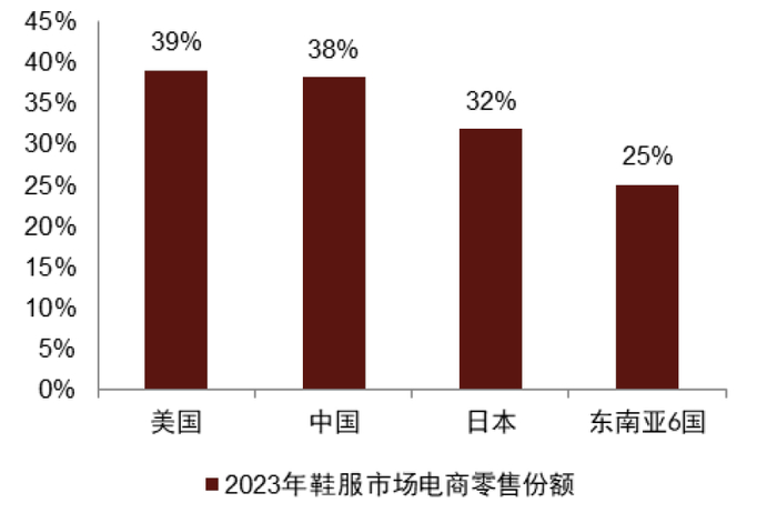 图表18:2023年部分国家和地区鞋服市场的电商份额