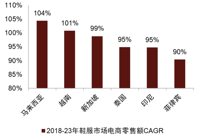 图表17:2013-23年东南亚国家鞋服电商规模CAGR