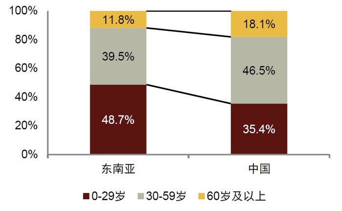 东南亚是除印度和中国外的第三大人口基数地区,占全球的8.6%,且出生率高、年轻人多,具备人口红利及较强的消费意愿。