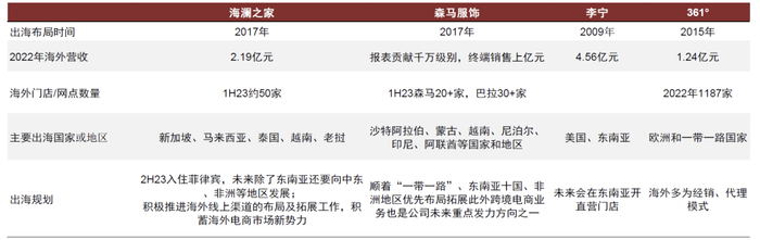 国内传统服装品牌加大东南亚市场布局力度,寻找新的增长曲线。从国内服装上市公司的情况看,运动服饰和大众休闲服饰的价位适中、客群受众广,出海发展潜力较大。约从2015年后各品牌陆续试水东南亚市场,前期多以经销模式出海,以扩大生意规模,但未注重对品牌力的打造。2023年开始,多个品牌将海外市场作为战略发展方向之一,如海澜之家、森马服饰、李宁等。结合前文东南亚鞋服市场品牌化、线上化的发展趋势看,我们认为这两点均为国内服装品牌的优势所在。品牌化的提升需要服装品牌在线下渠道规模化开店、深入当地市场,通过与消费者建立更深的连接,提升品牌竞争力;同时国内电商发展早、模式多样化,国内品牌运营经验丰富,有望分享东南亚电商市场高增长红利。具体来看: