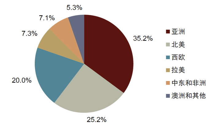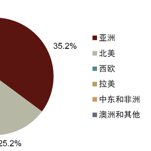 注:1)东南亚及亚洲其他为亚洲市场剔除大中华区、印度、日本、韩国的数据;2)大中华区为中国大陆+中国香港+中国台湾数据