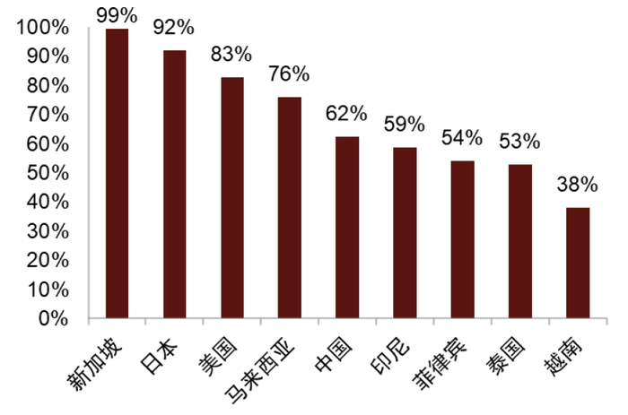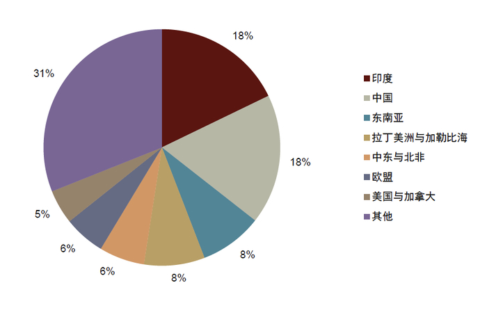 注:此处东南亚地区包括全部11个国家,即印尼、马来西亚、泰国、新加坡、菲律宾、越南、柬埔寨、缅甸、老挝、文莱、东帝汶