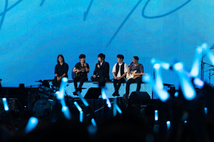 2023年6月25日,五月天《好好好想见到你》演唱会武汉场最后一场在武汉五环体育中心开演,图为五位成员齐坐一堂。年底,五月天陷入假唱风波。