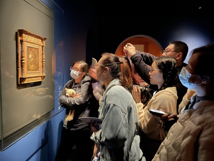 2023年12月10日,上海,“对话达•芬奇——文艺复兴与东方美学艺术特展”是上海博物馆“对话世界”文物艺术系列的第三个大展,也是首次打造的东西方绘画对比展。本次展览由上海博物馆和意大利特雷卡尼百科全书研究院联合主办,并得到意大利驻沪总领事馆的大力支持,特别呈现米兰盎博罗削图书馆和美术馆、帕尔马国家美术馆以及佛罗伦萨博那罗蒂之家收藏的文艺复兴艺术珍品。同时,上海博物馆以中国古代绘画传世名作与之对应,通过创新布展方式,从纵向和横向两个维度上予以呈现和对话。