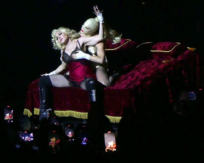 当地时间2023年12月14日,美国纽约布鲁克林,麦当娜(Madonna)庆典巡回演唱会纽约场。麦当娜多套造型点燃全场。