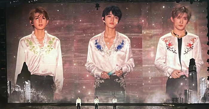 2023年8月6日,西安,TFboys出道10周年演唱会现场,王俊凯、王源、易烊千玺登台。