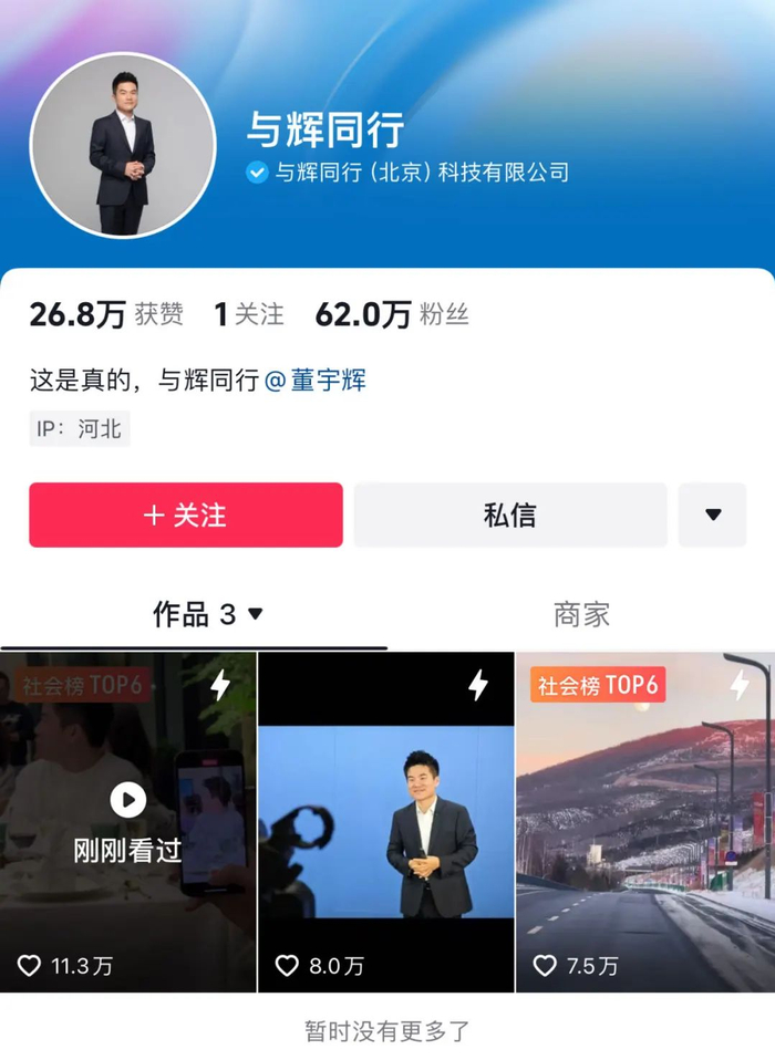 董宇辉抖音新号开通,一夜涨粉超50万!曾称“未来东方甄选能卖的,我也能卖”……