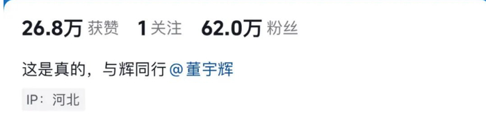 该账号IP地址显示为河北,有网友质疑账号的真实性。似乎是为了回应网友的疑虑,该账号的个人简介中写着“这是真的,与辉同行@董宇辉。”