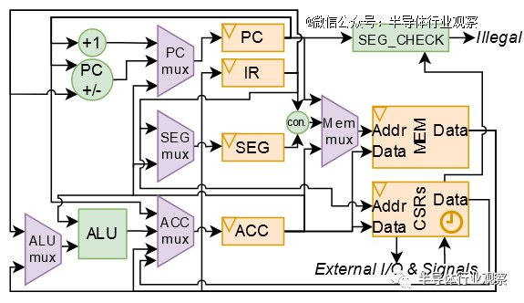 从这个设计可以看到,里面有了很多的变化!例如观察现在有一个段寄存器,它与部分指令连接在一起,以解码具有可变数据操作数的指令的地址。