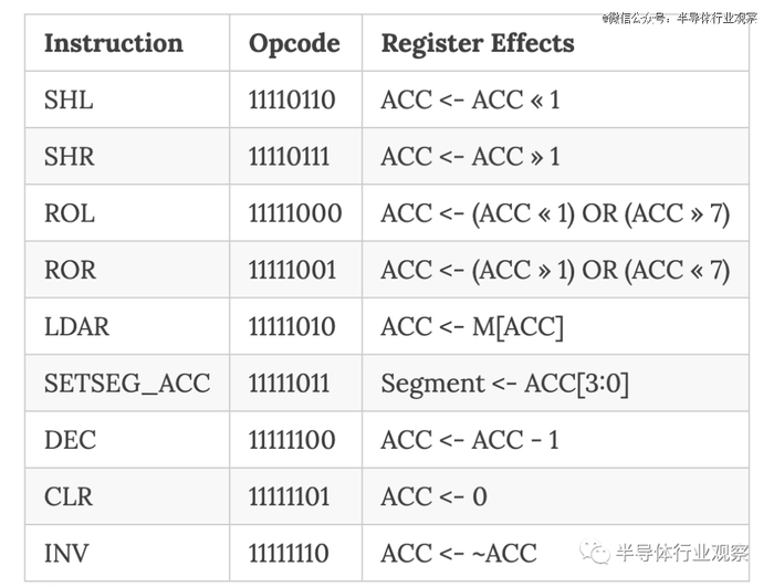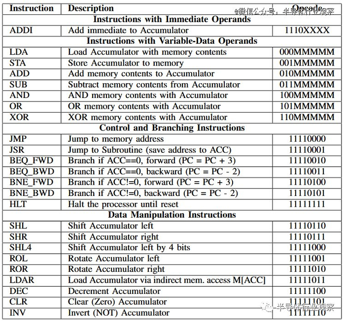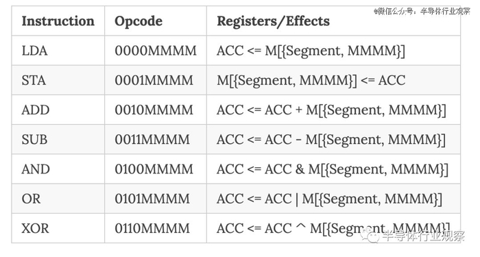 考虑到大小限制,内存访问“带有可变数据操作数的指令”仅使用 5 位来指定内存地址,这意味着处理器将被限制为** 32 字节内存。