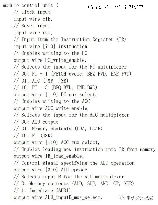 This looks excellent. According to this list, please produce the module definition for a control unit in Verilog which could operate the processor datapath. Please comment the purpose of each I/O. If a signal is for controlling a multiplexer, please also comment what each possible value should correspond to in the datapath.