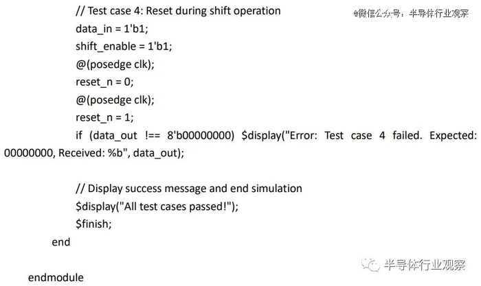 如果任何测试用例失败,测试台会提供错误消息。如果所有测试用例都通过。
